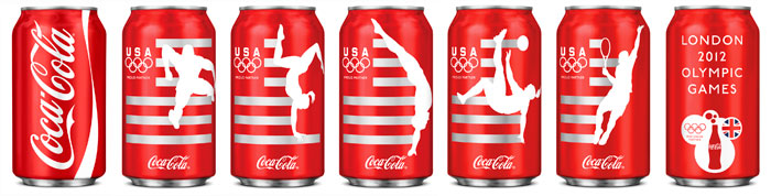 La grande marque de soda, Coca-Cola, lance 8 canettes en édition limitée pour soutenir l’équipe américaine aux Jeux Olympiques de Londres 2012.