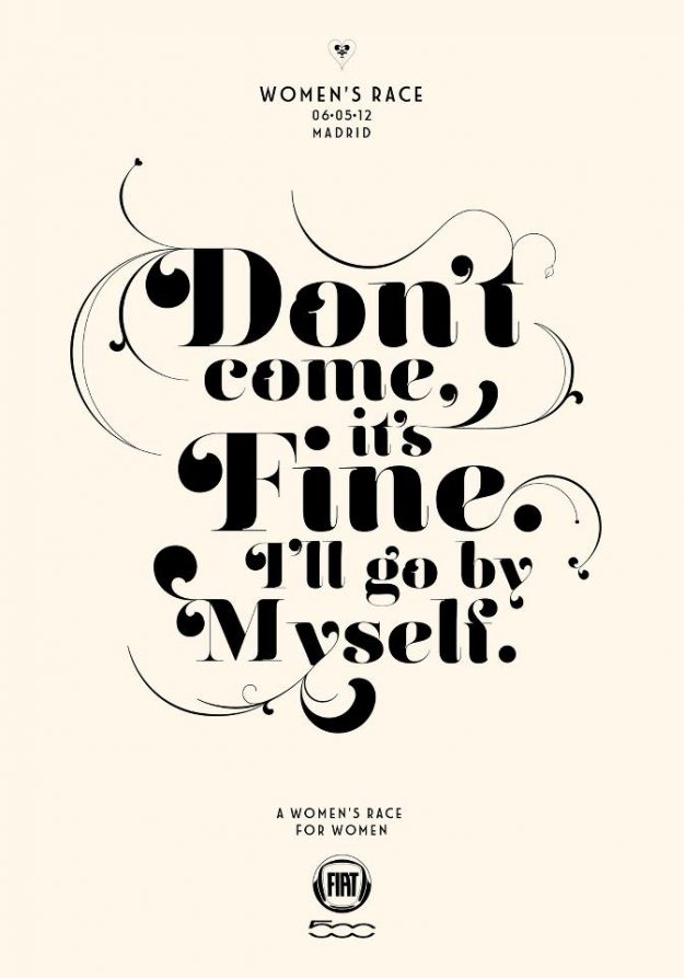 Une nouvelle campagne de communication pour la marque italienne de voiture Fiat. Cette campagne est axée sur son produit phare, la Fiat 500, et sur un événement important à Madrid « Women’s Race ». Le message « You’re not coming? Alright, do whatever you want. » & « If you don’t want to come, don’t it’s up to you. » est…