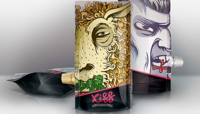 Joli concept de packaging appelé « Kiss » qui met en avant des mélanges inhabituels de fruits et légumes naturels. Le logo est développé autour de la langue et son aspect. Une typographie développée pour l’occasion, qui est très arrondie et moderne. Il y aura 5 packaging produit différents. Chaque « Kiss » aura un goût unique développé pour l’occasion. Il…